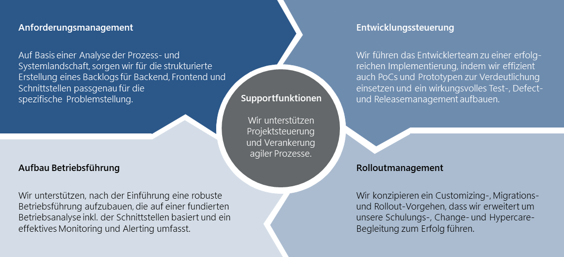 Unsere Projekte befassen sich oft mit der Konzeption, Einführung oder Optimierung von PPS-, ERP-, KPI-, Prognose- und Analyse-Systemen, eingebettet in Domänenmodell und Bebauungsplan des Unternehmens. Dies fordert z.B. unsere folgenden Kompetenzen, die wir problemspezifisch erfolgreich zum Einsatz bringen: